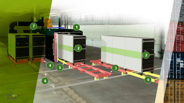 Транспортування стандартного комплексу ЕККО здійснюється вантажними автомобілями (вантажівка, TIR) або відкритими морськими контейнерами об'ємом не менше 40 футів.